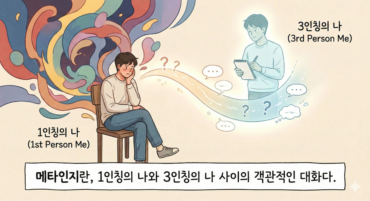 메타인지는 나를 분석하는 기술이 아닙니다. 나와 나 사이의 가장 솔직한 대화입니다. 그 대화가 깊어질수록, 나는 외부의 흔들림에 덜 휘둘리고 내 안의 기준으로 살아갈 수 있게 됩니다.