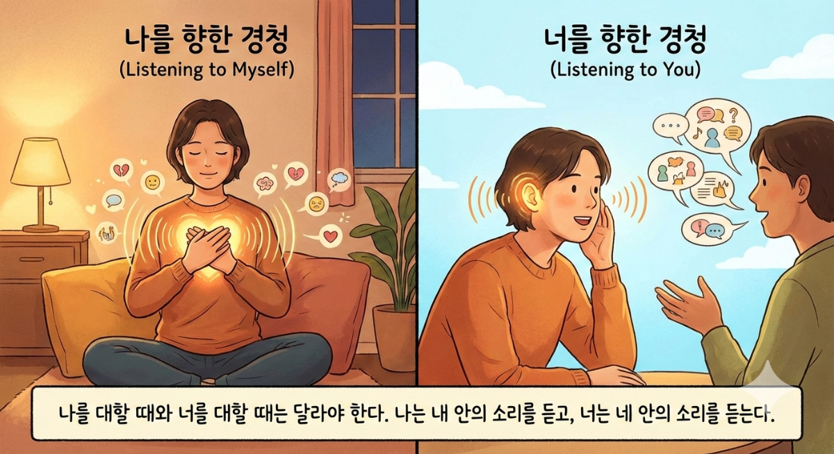 이것은 듣기가 아닙니다. 나의 소리를 잃어버린 것입니다. 너의 소리만 듣다 보면, 내 안의 소리는 점점 작아지고, 어느새 들리지 않게 됩니다.