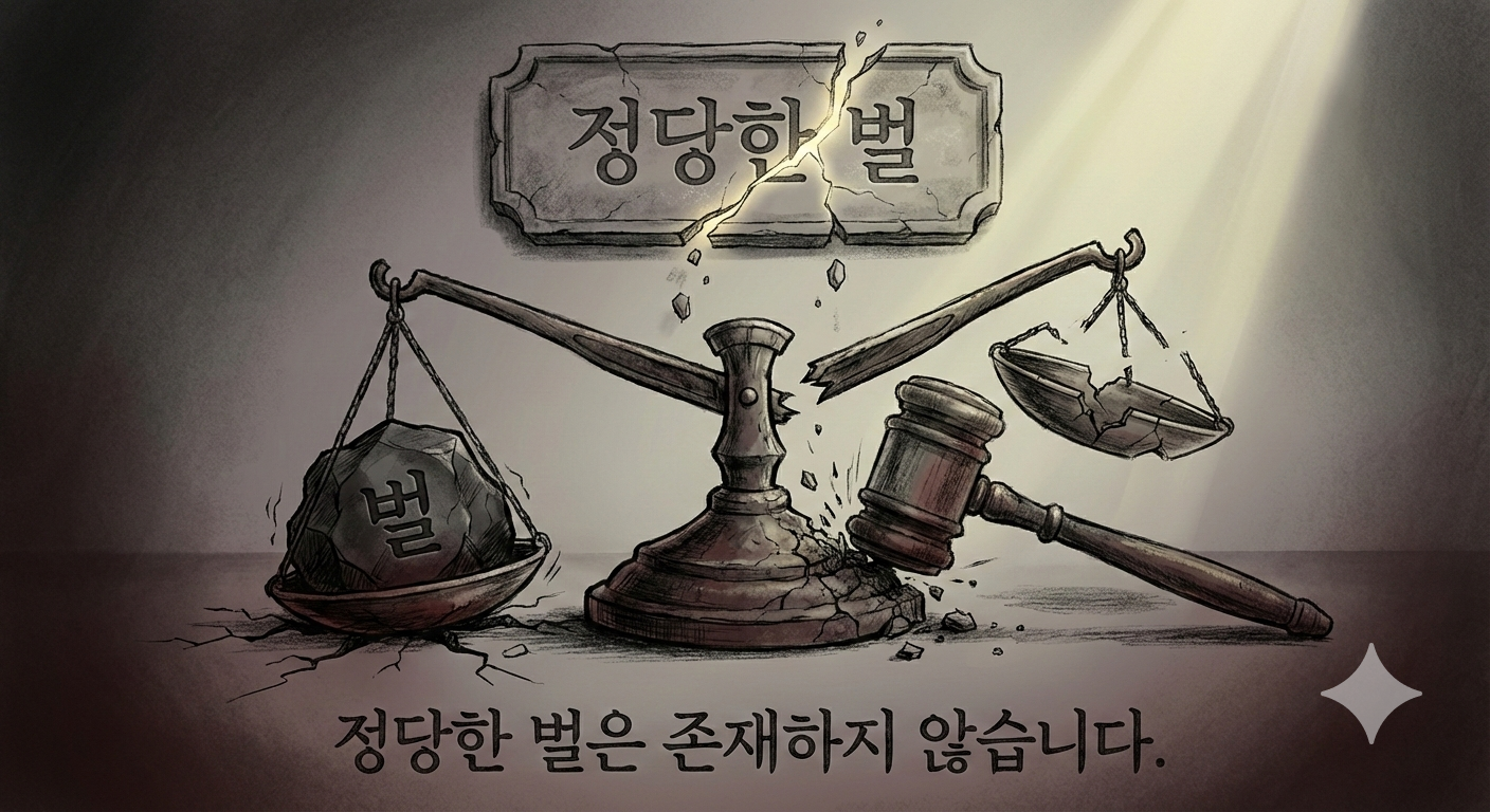 그런데 여기서 멈춰야 합니다. 정당한 벌이 존재한다고 인정하는 순간, 우리는 동시에 정당하지 않은 벌도 존재한다는 것을 인정하는 것입니다. 정당함의 경계를 누가 정하는가, 그 기준이 어디서 오는가. 이 질문 없이 벌을 내리는 것은 위험합니다.