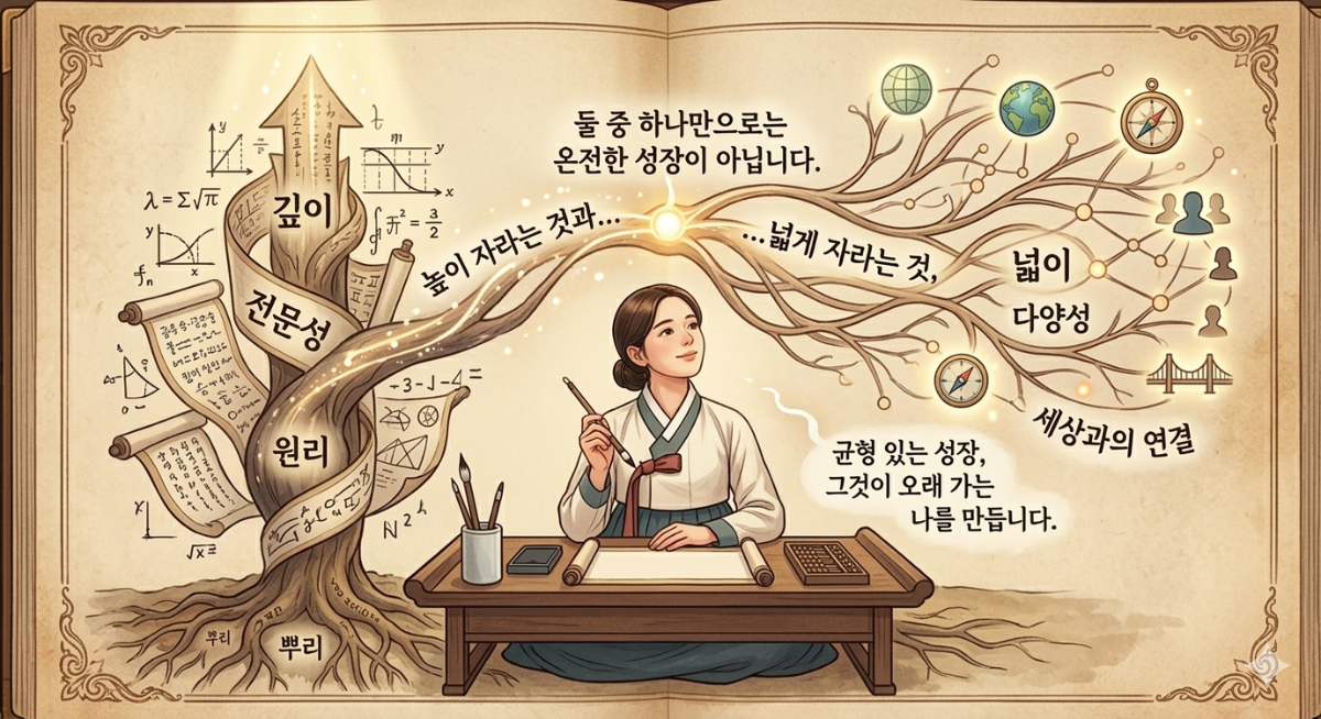깊어지고 넓어지는 것. 그 두 가지가 함께일 때 성장은 완성됩니다.