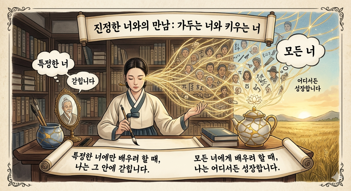 “특정한 너에게만 배우려 할 때, 나는 그 안에 갇힙니다. 모든 너에게 배우려 할 때, 나는 어디서든 성장합니다.”