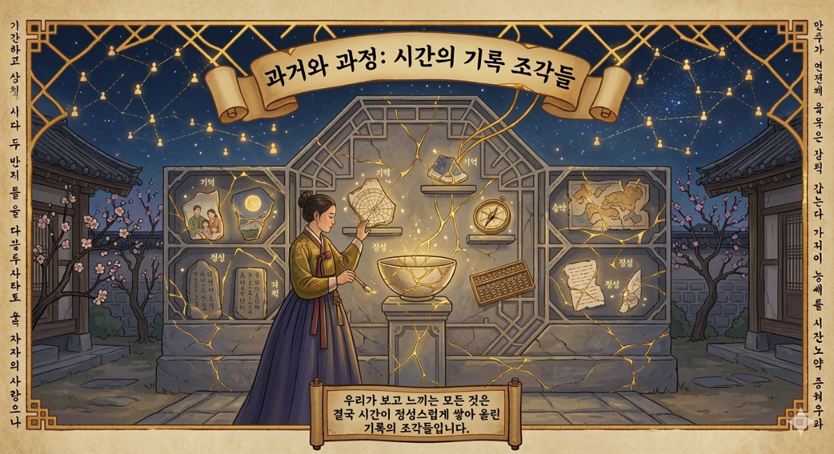 지금 이 글을 읽는 행위도, 눈을 깜빡이는 것도, 숨을 쉬는 것도 — 그 모든 것은 일어나자마자 과거가 됩니다. 과거만이 형태를 갖습니다. 과거만이 기억될 수 있고, 배울 수 있고, 바꿀 수 없습니다.